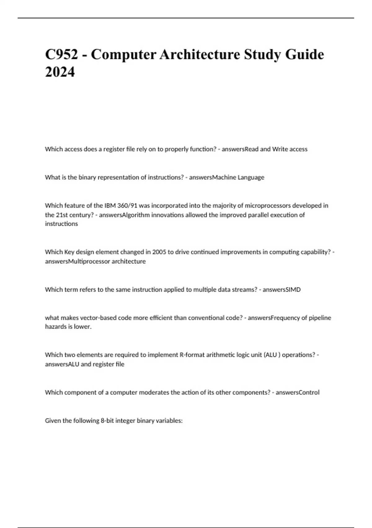 c952 computer architecture study guide 2024