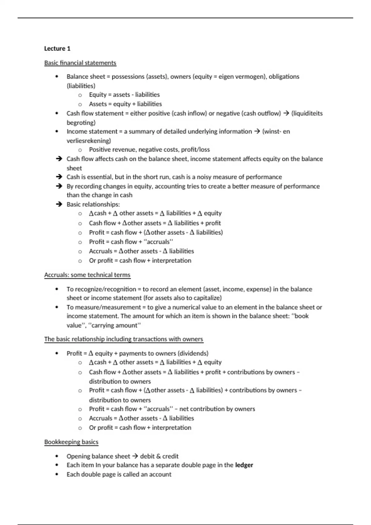 o Profit = cash flow + ‘’accruals’’