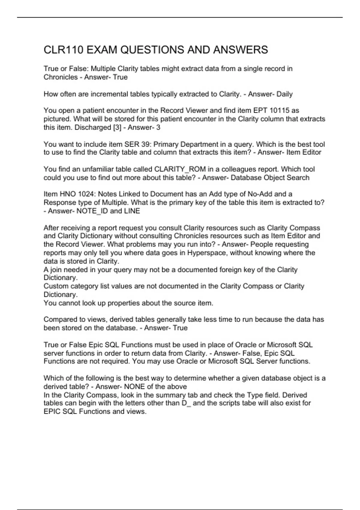 CLR110 EXAM QUESTIONS AND ANSWERS