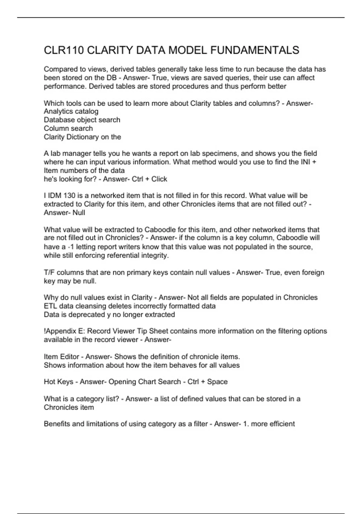 CLR110 CLARITY DATA MODEL FUNDAMENTALS