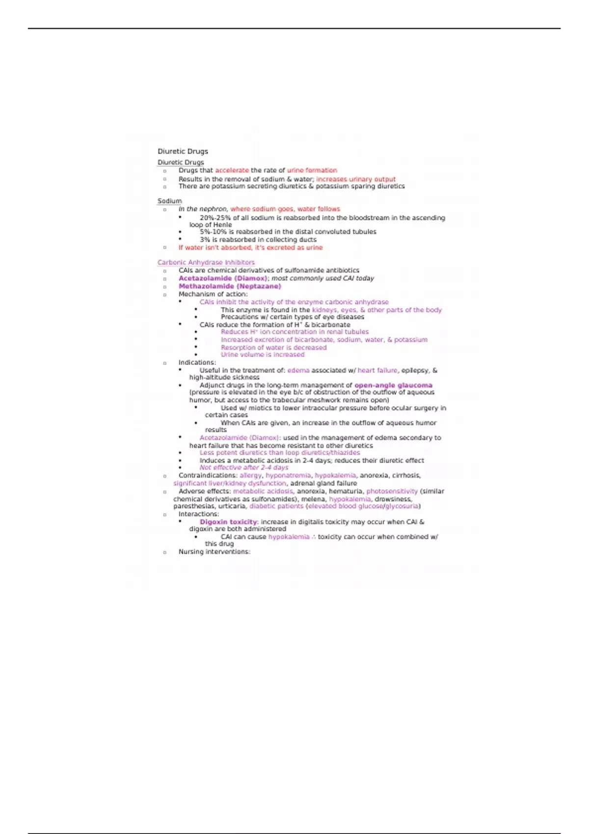Diuretic drugs class notes