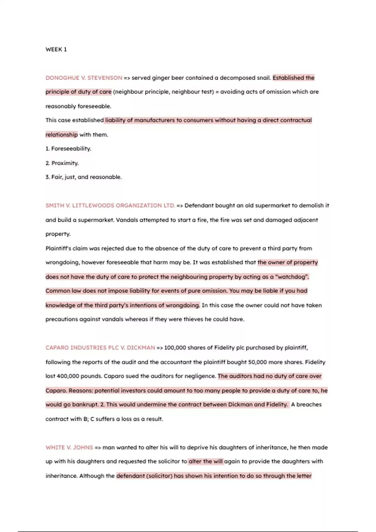 principle of duty of care (neighbour principle, neighbour test) = avoiding acts of omission which are