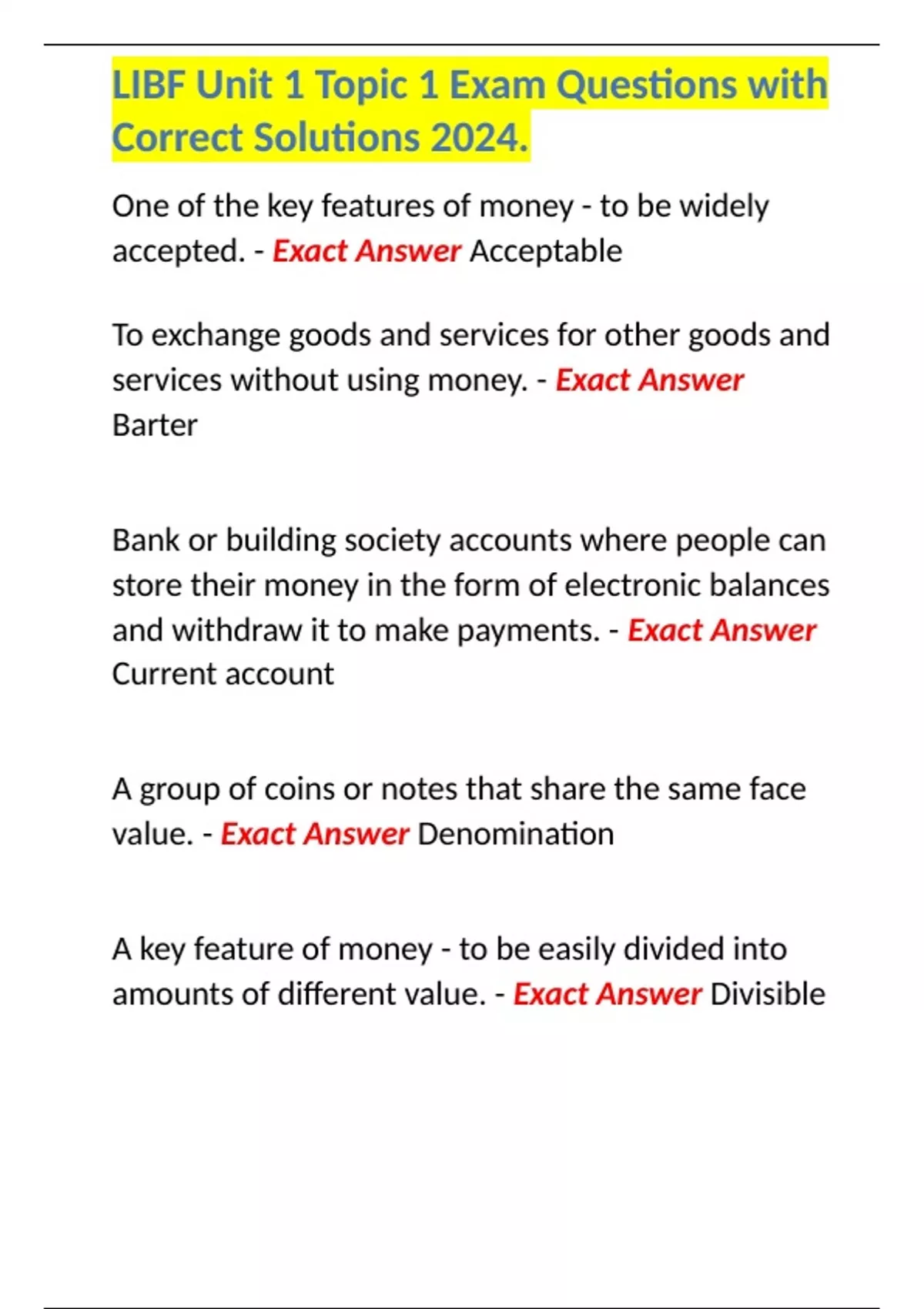 LIBF Unit 1 Topic 1 Exam Questions with Correct Solutions 2024.