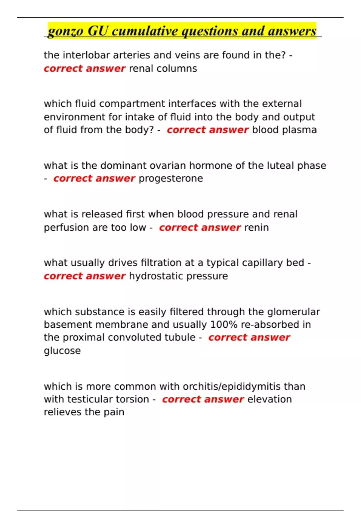 gonzo GU cumulative questions and answers