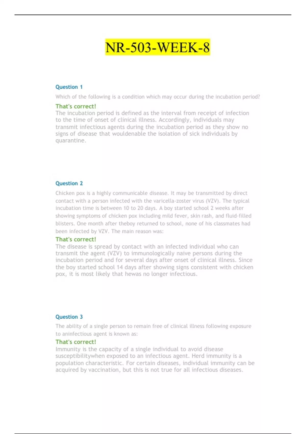 acquired by vaccination, but this is not true for all infectious diseases.