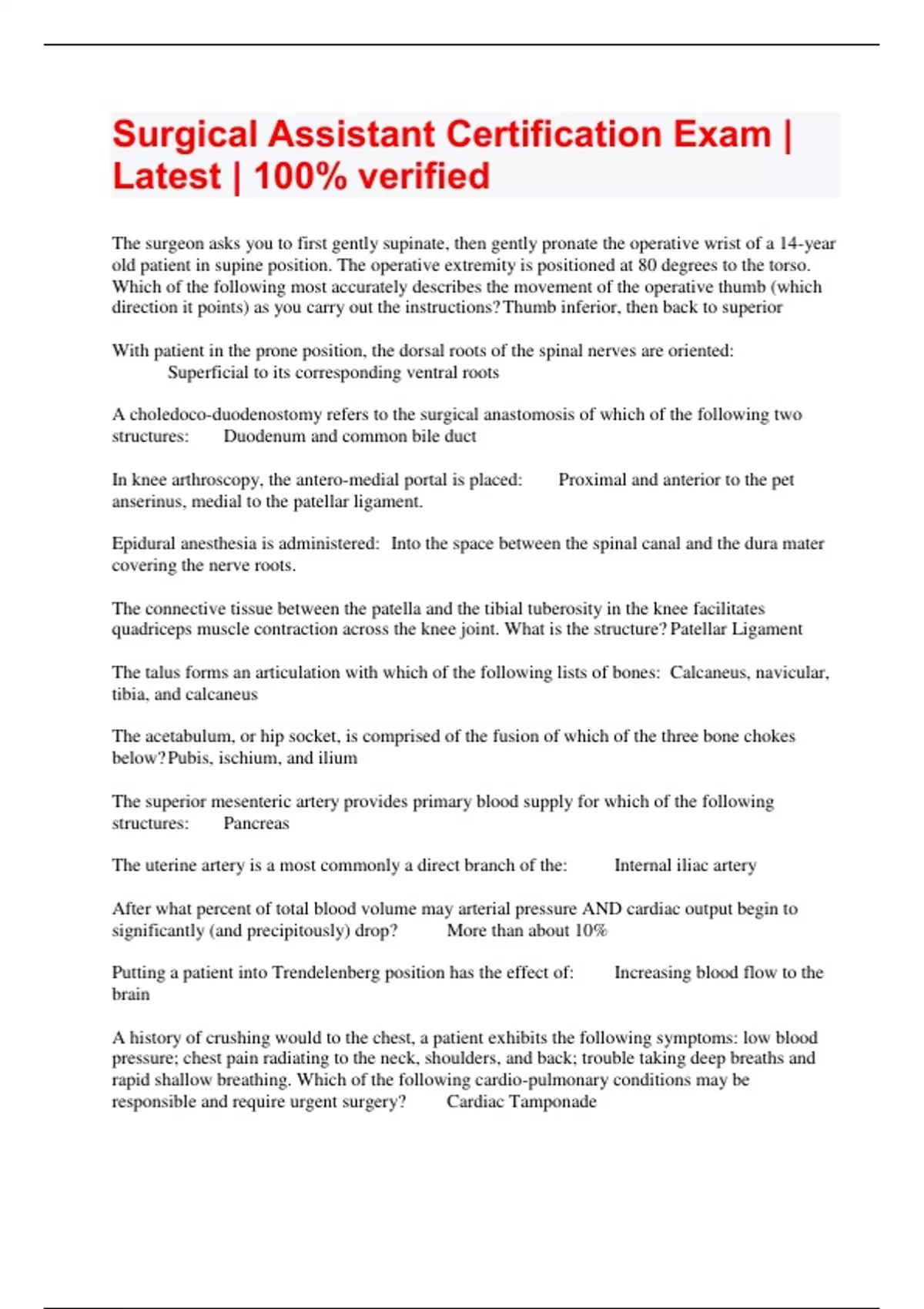 Surgical Assistant Certification Exam | Latest | 100% verified