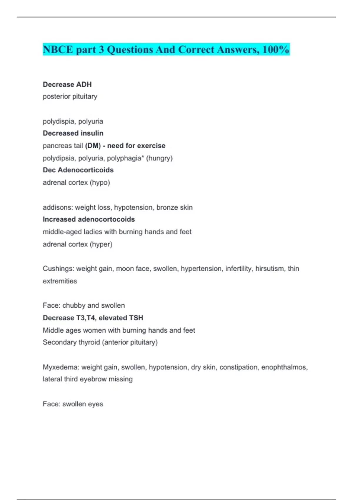 Myxedema: weight gain, swollen, hypotension, dry skin, constipation, enophthalmos,