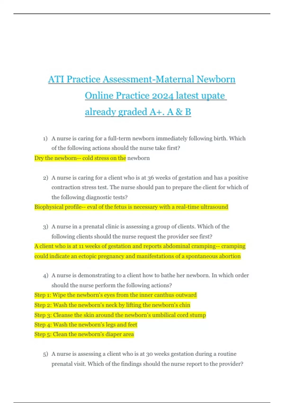 ATI Practice Assessment-Maternal Newborn Online Practice 2024 latest upate already graded A+. A & B