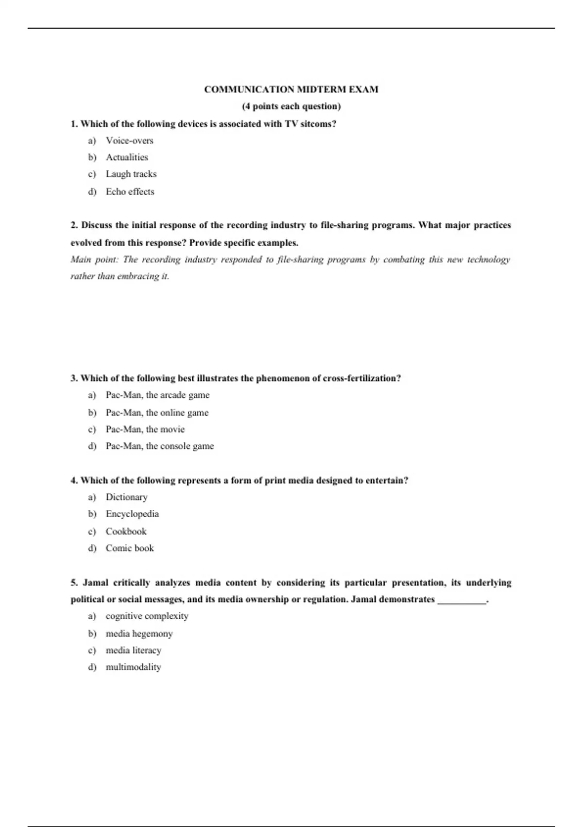 Exam (elaborations) COMM 2100