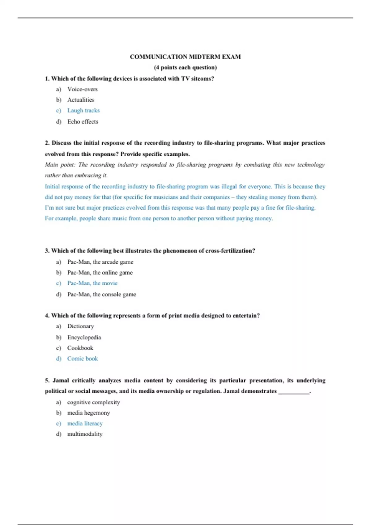 Exam (elaborations) COMM 2100