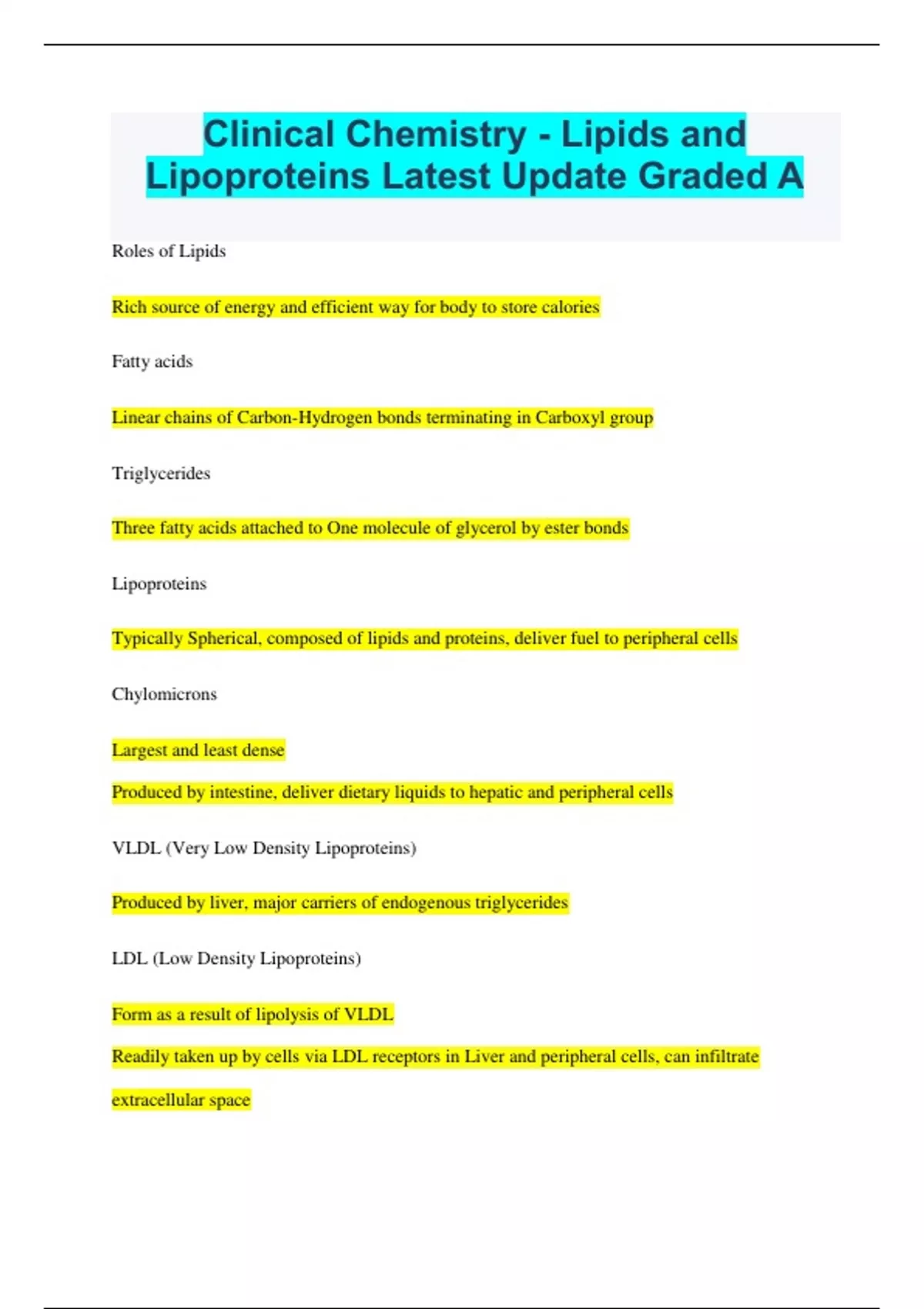 Clinical Chemistry - Lipids and Lipoproteins Latest Update Graded A