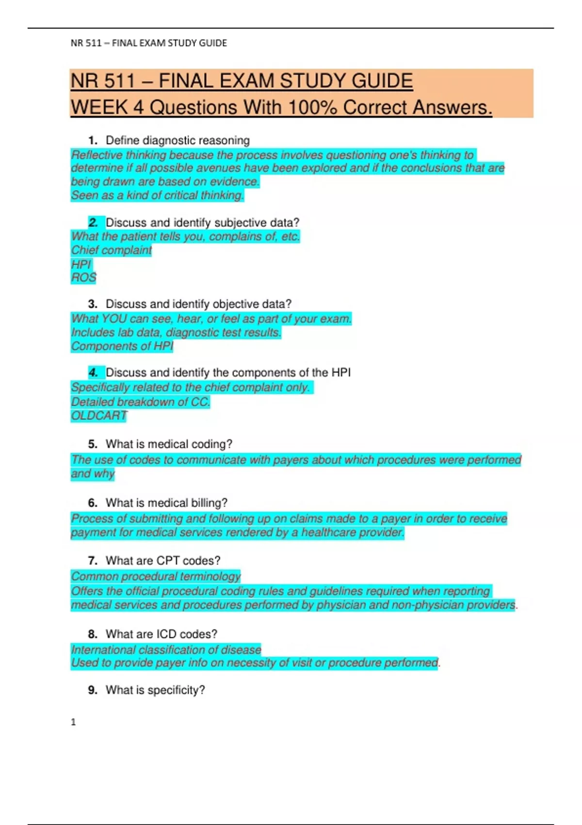 NR 511 – FINAL EXAM STUDY GUIDE WEEK 4 Questions With 100% Correct Answers. NR 511 – FINAL EXAM STUDY GUIDE WEEK 4 Questions With 100% Correct Answers.