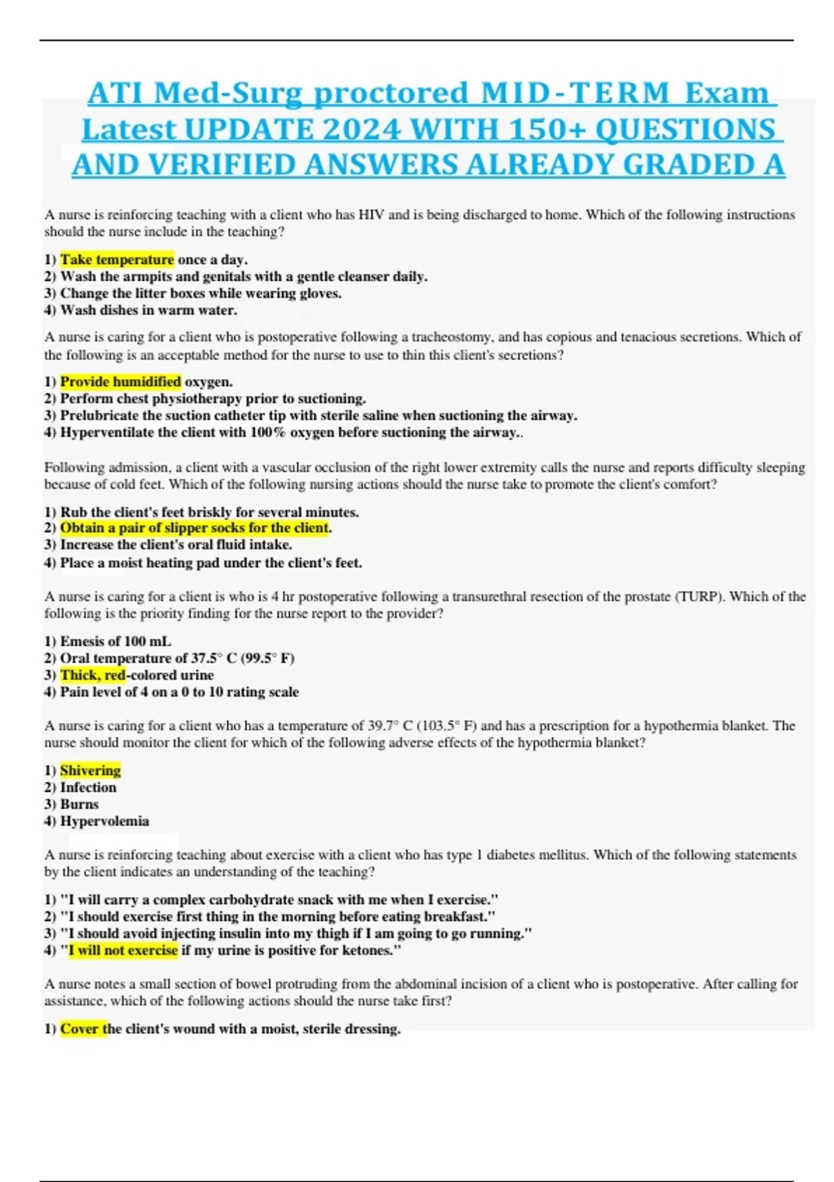 ATI Med-Surg proctored MID-TERM Exam Latest UPDATE 2024 WITH 150+ QUESTIONS AND VERIFIED ANSWERS ALREADY GRADED A