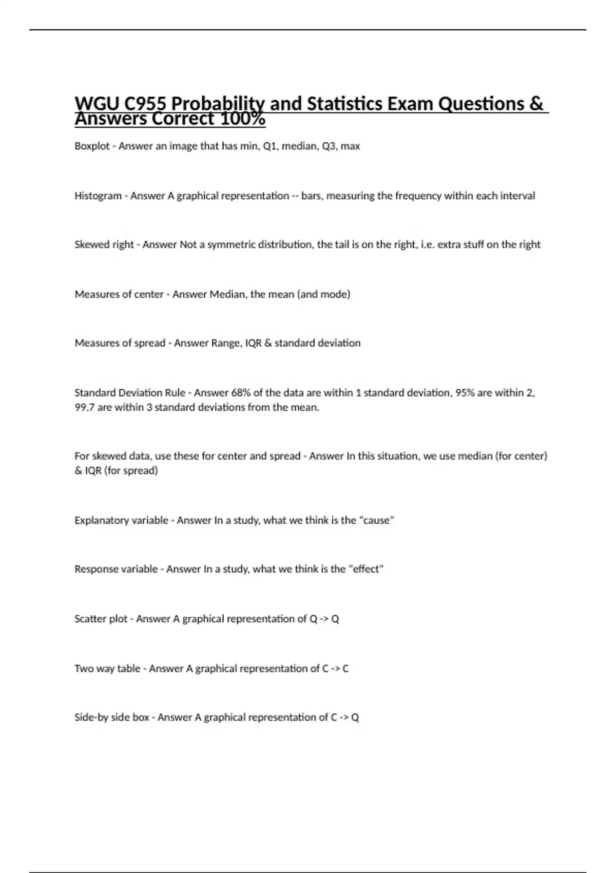 WGU C955 Probability and Statistics Exam Questions & Answers Correct 100%