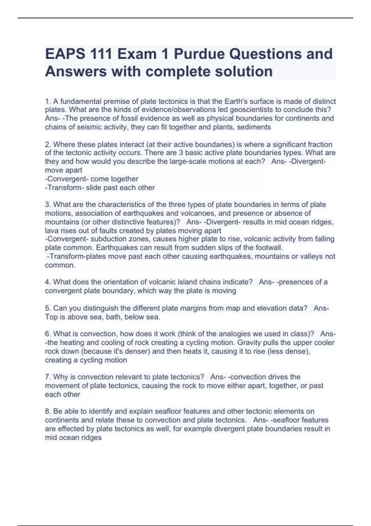 EAPS 111 Exam 1 Purdue Questions and Answers with complete solution
