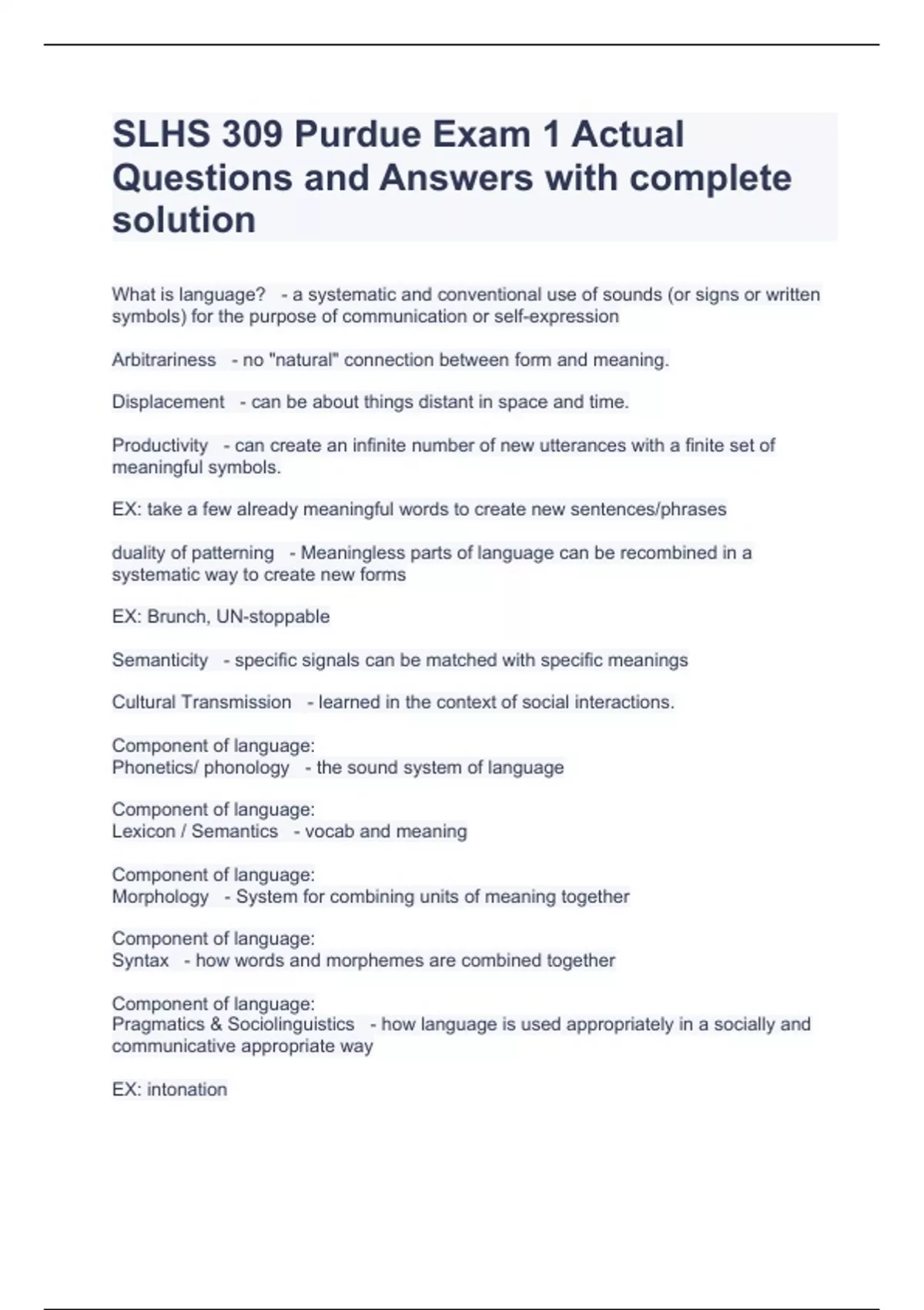 slhs 309 purdue exam 1 actual questions and answer