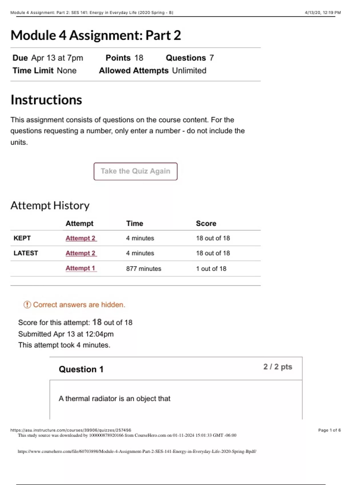 Module 4 Assignment: Part 2: SES 141: Energy in Everyday Life