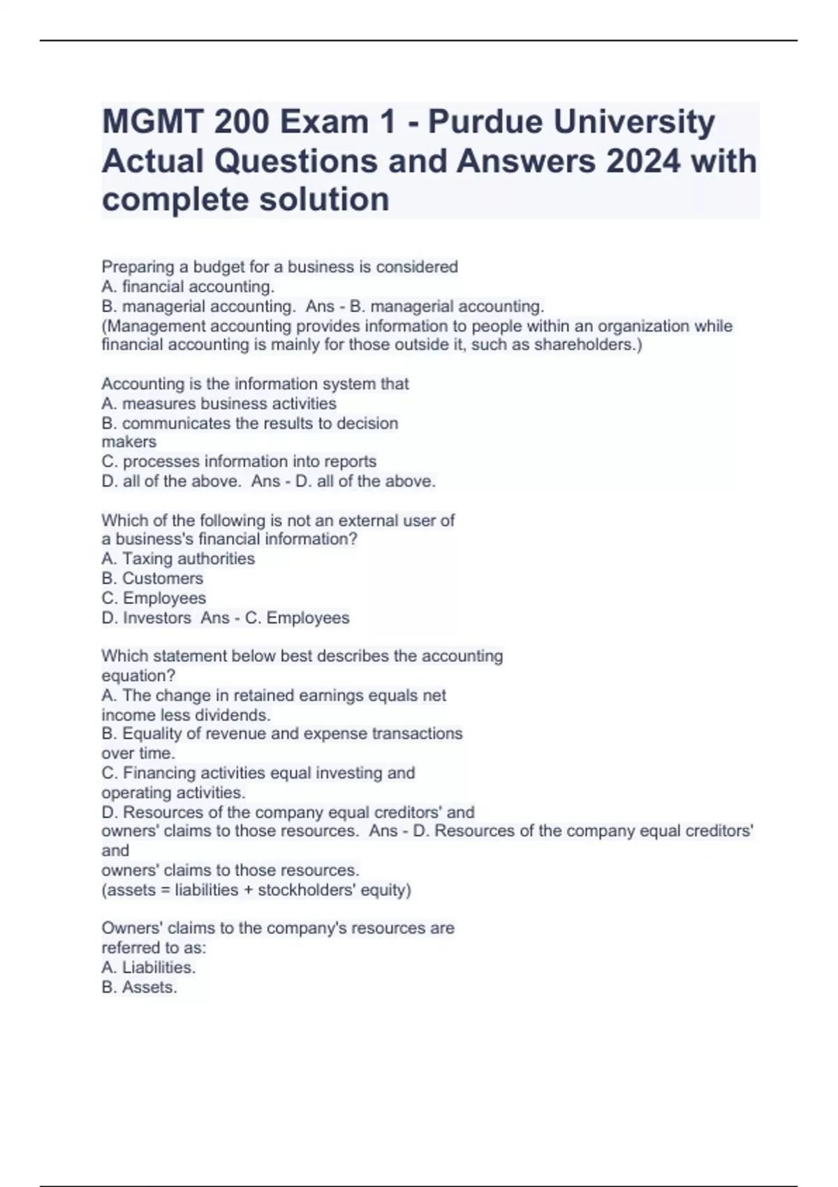 MGMT 200 Exam 1 - Purdue University Actual Questions and Answers 2024 with complete solution