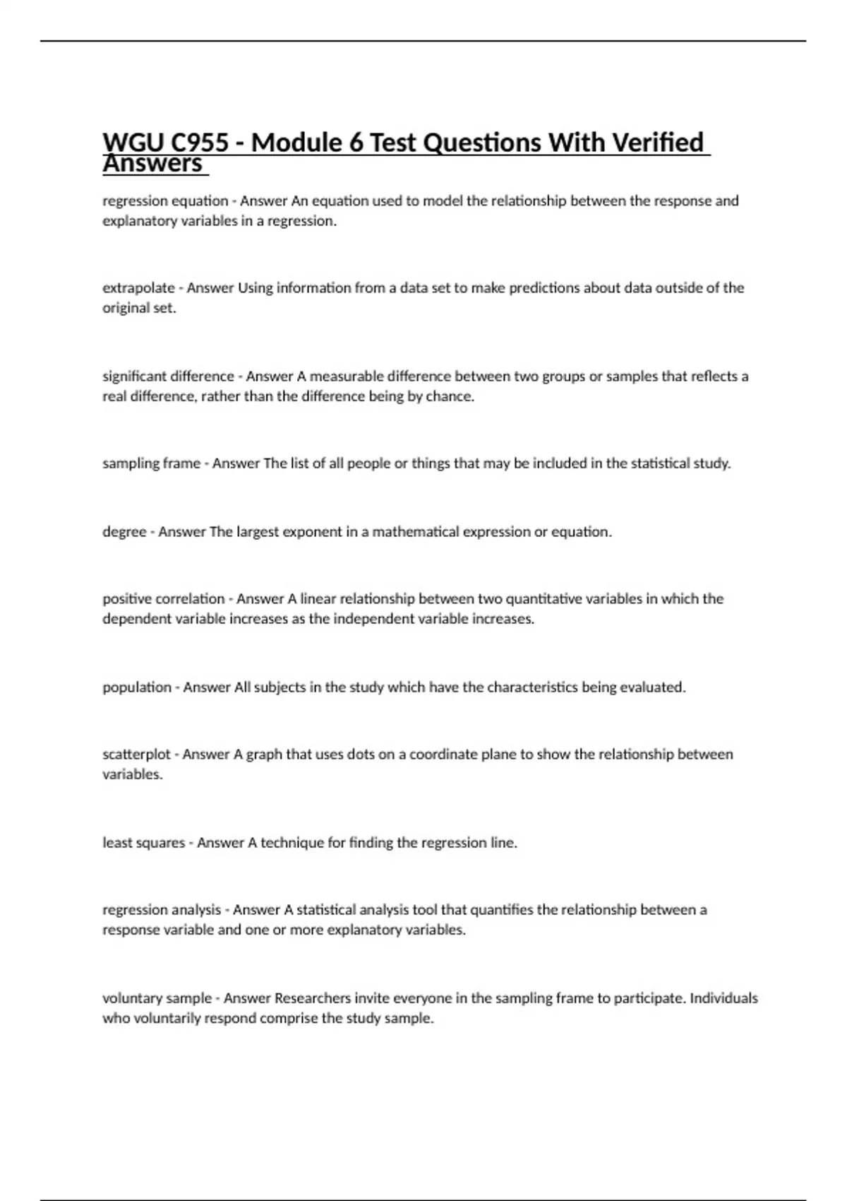 WGU C955 - Module 6 Test Questions With Verified Answers
