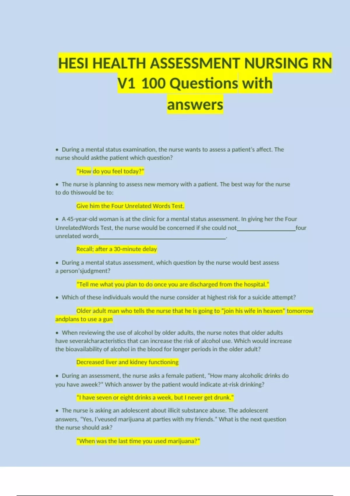 “When was the last time you used marijuana?” •The nurse has completed an assessment on a patient who came to the clinic for a leg injury. As