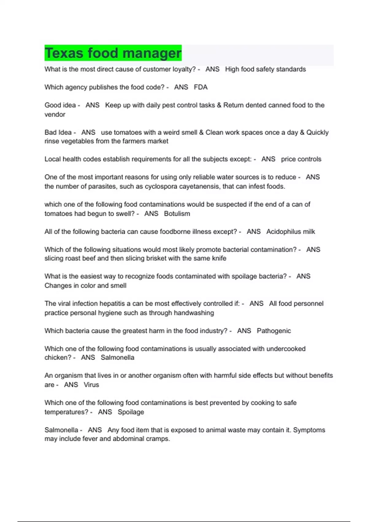 Texas food manager Exam 2024 Latest Questions and Answers (Verified by Expert)