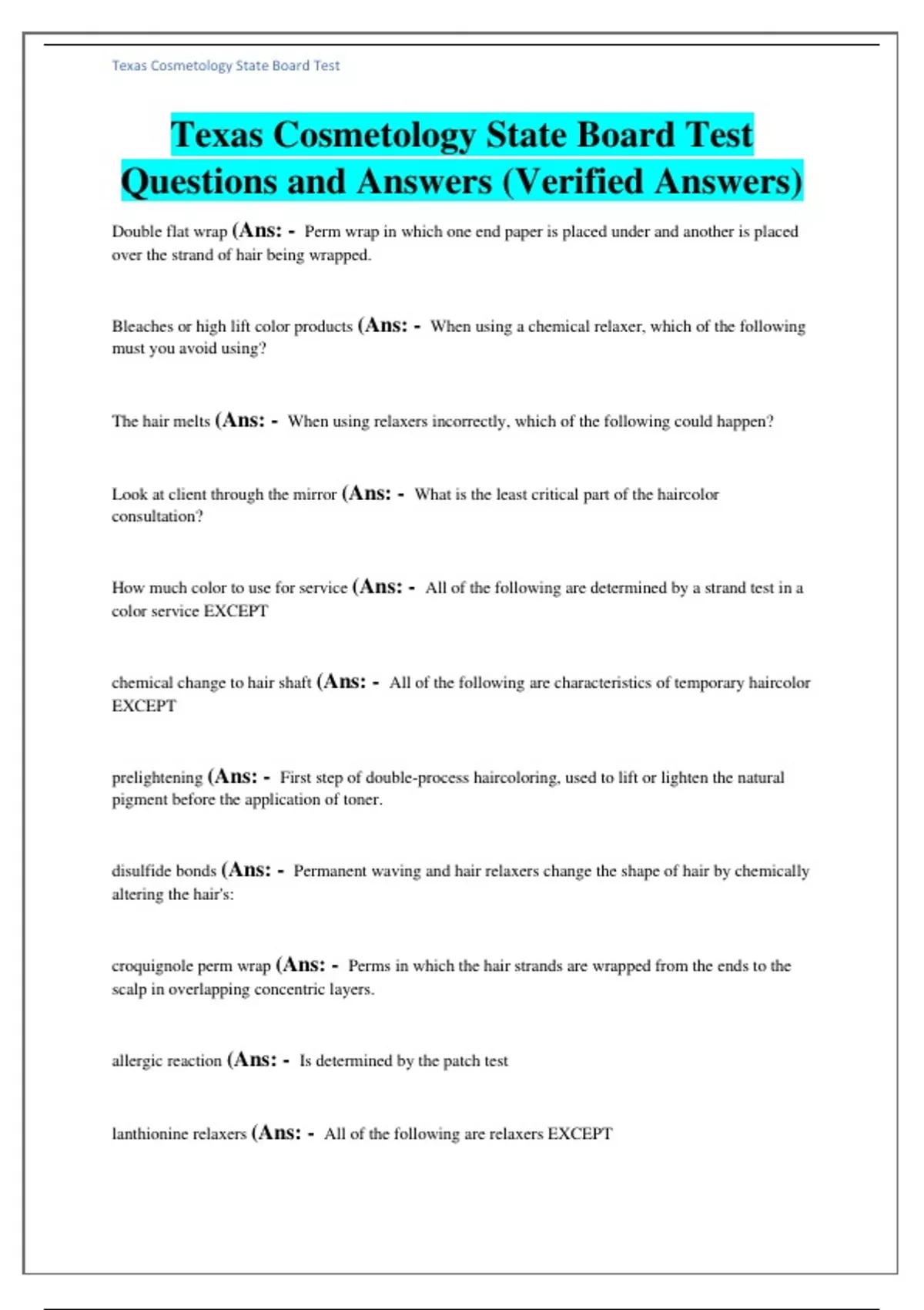 Texas Cosmetology State Board Test Questions and Answers (Verified Answers)
