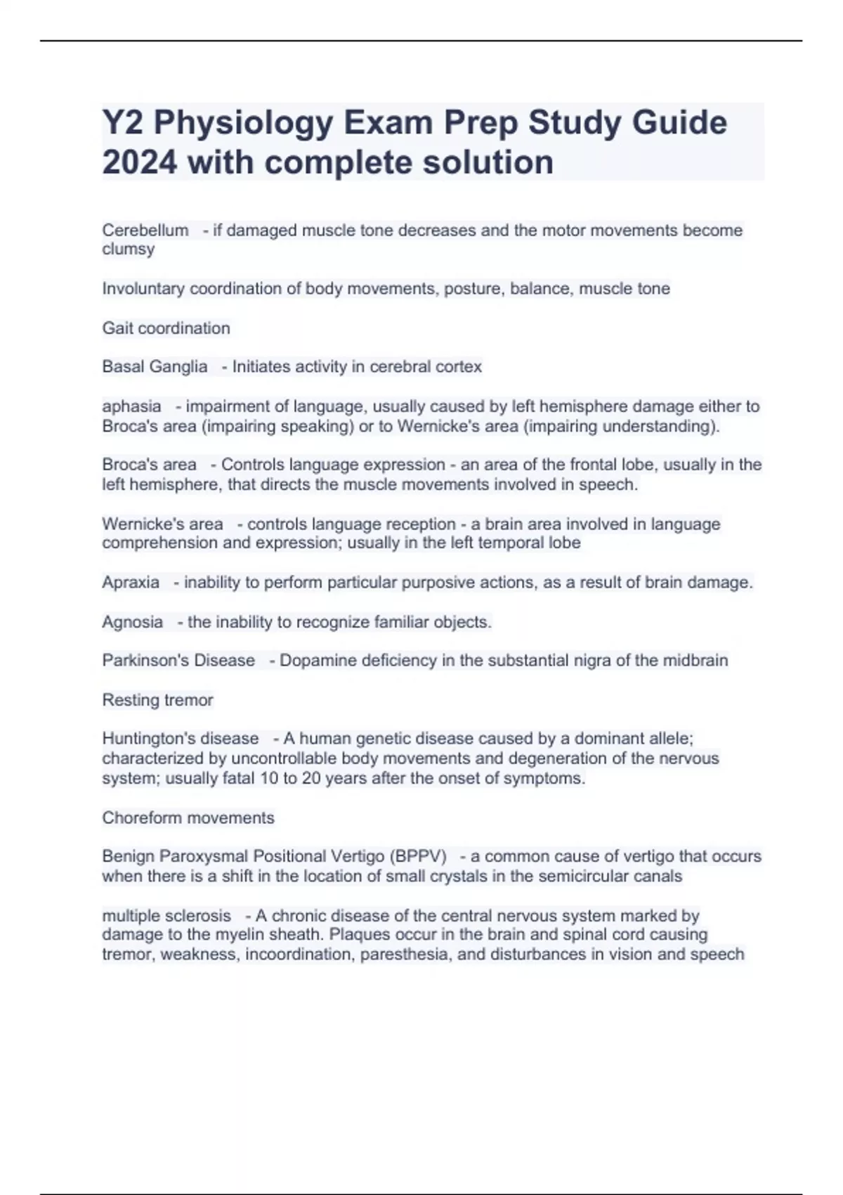 Y2 Physiology Exam Prep Study Guide 2024 with complete solution