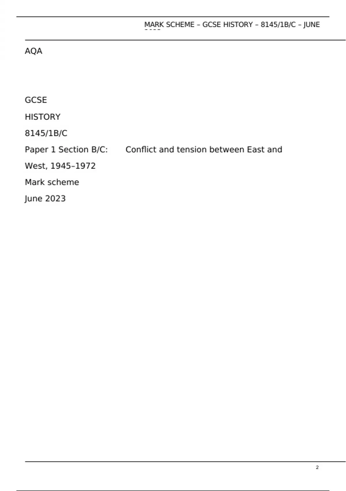 , MARK SCHEME – GCSE HISTORY – 8145/1B/C – JUNE