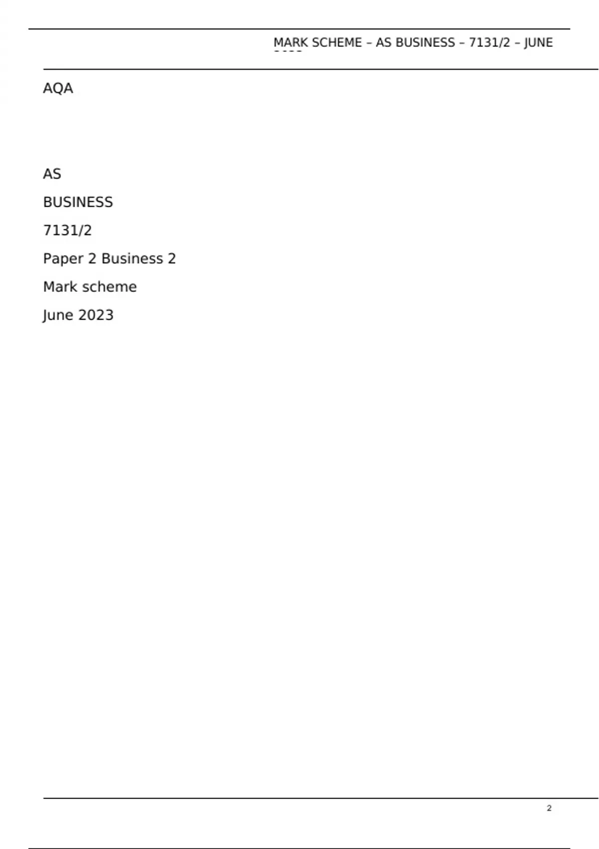AQA AS BUSINESS 7131/2 Paper 2 Business 2 Mark scheme June 2023