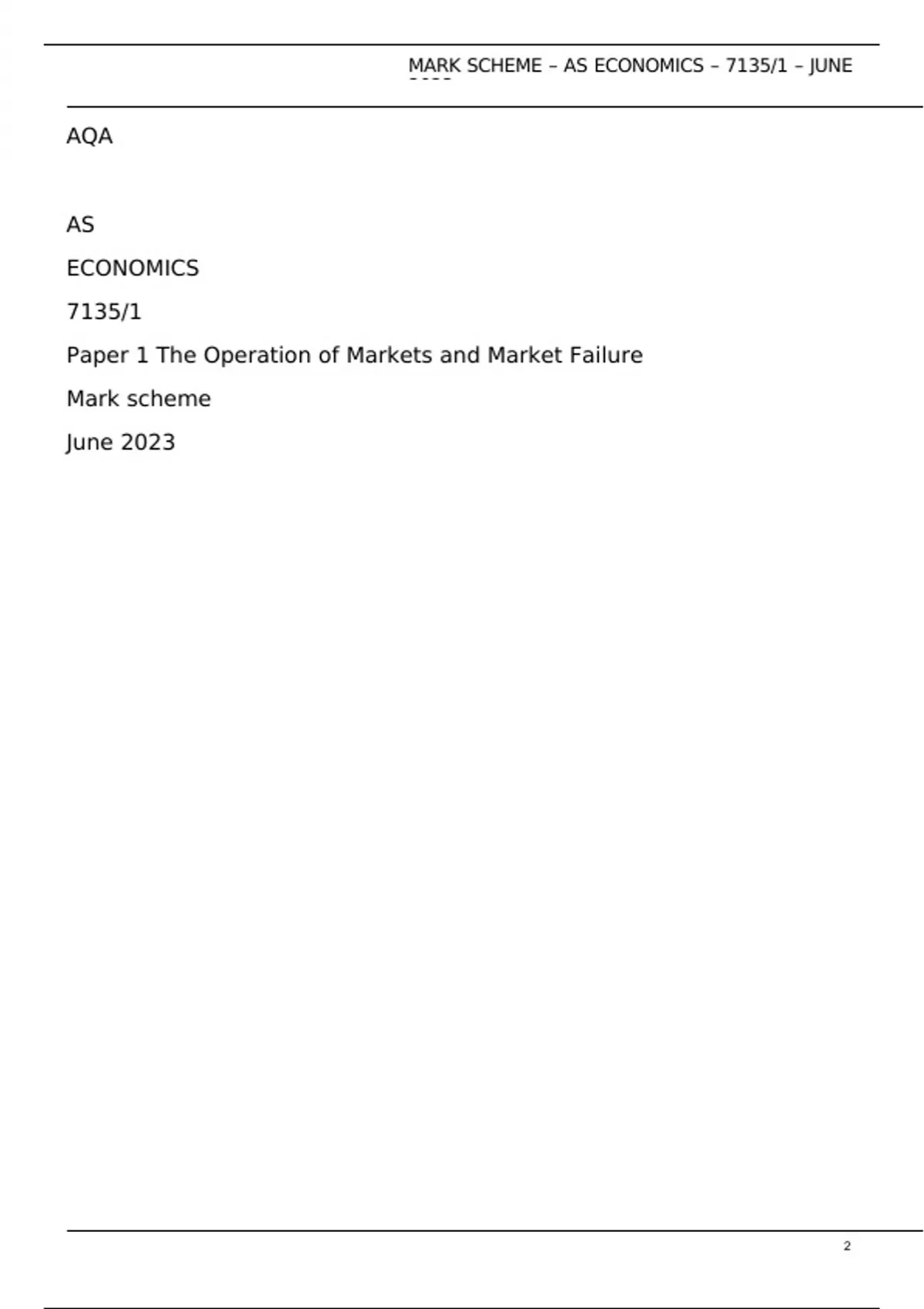 , MARK SCHEME – AS ECONOMICS – 7135/1 – JUNE