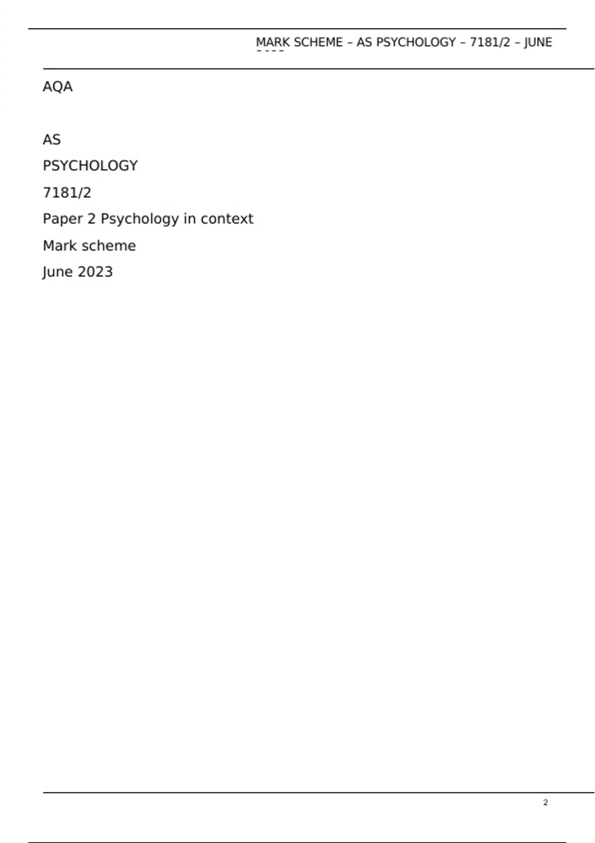 MARK SCHEME – AS PSYCHOLOGY – 7181/2 – JUNE