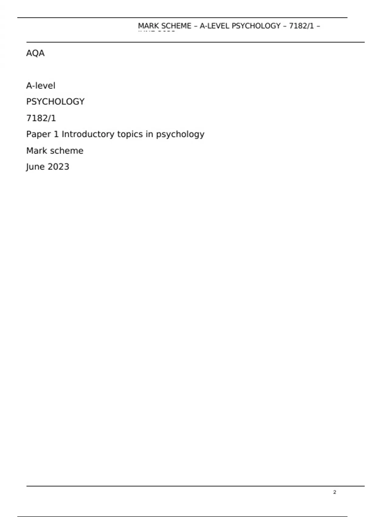 AQA A-level PSYCHOLOGY 7182/1 Paper 1 Introductory topics in psychology Mark scheme June 2023