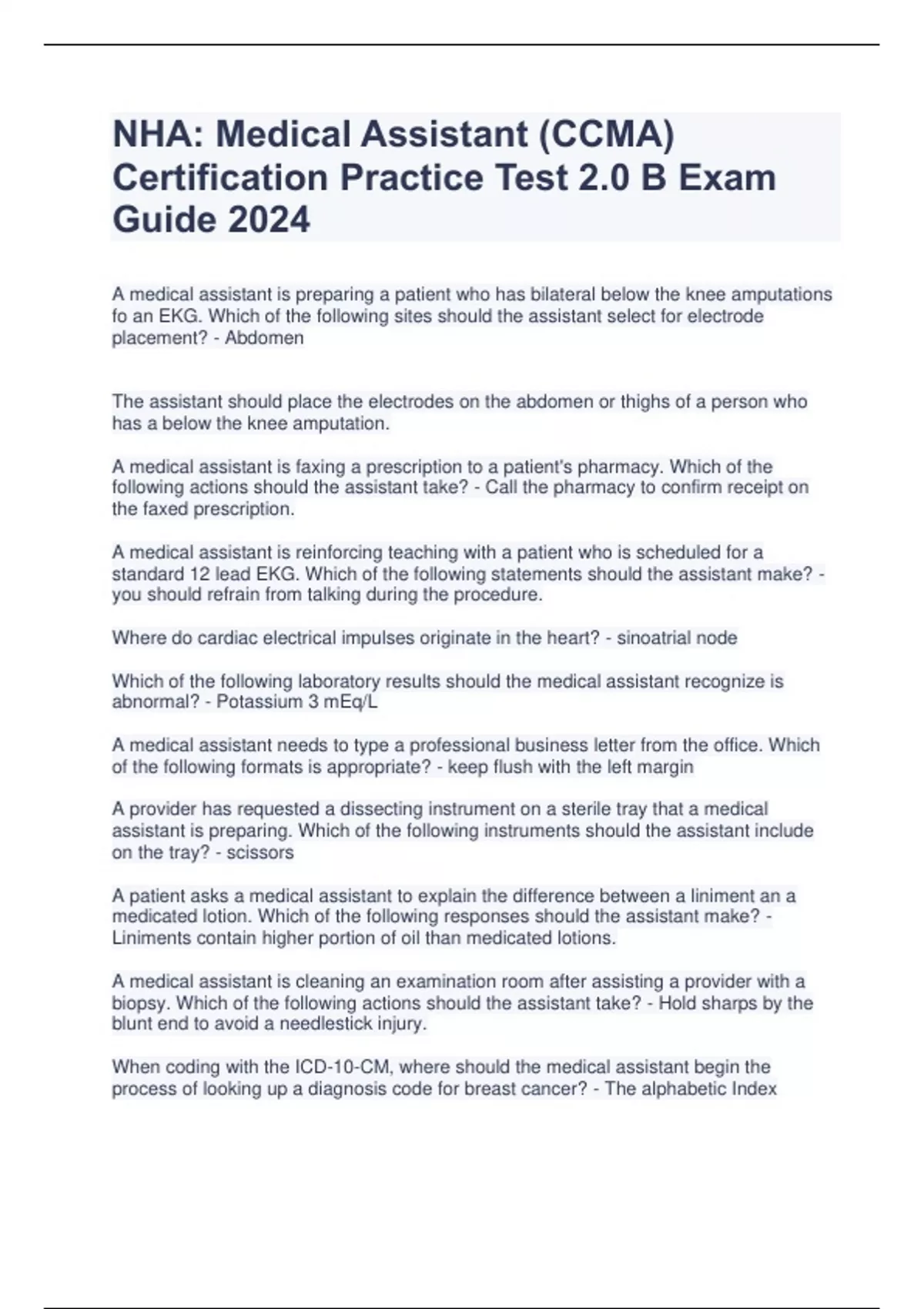NHA: Medical Assistant (CCMA) Certification Practice Test 2.0 B Exam Guide 2024