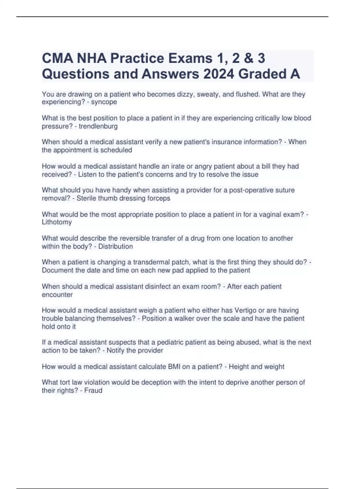 CMA NHA Practice Exams 1, 2 & 3 Questions and Answers 2024 Graded A