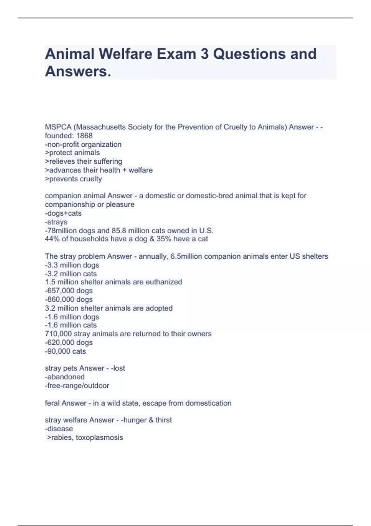 Animal Welfare Exam 3 Questions and Answers