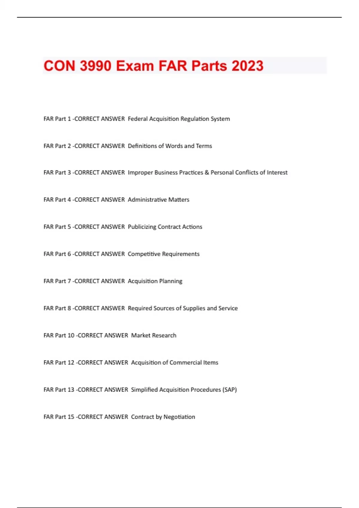 CON 3990 Exam FAR Parts 2023