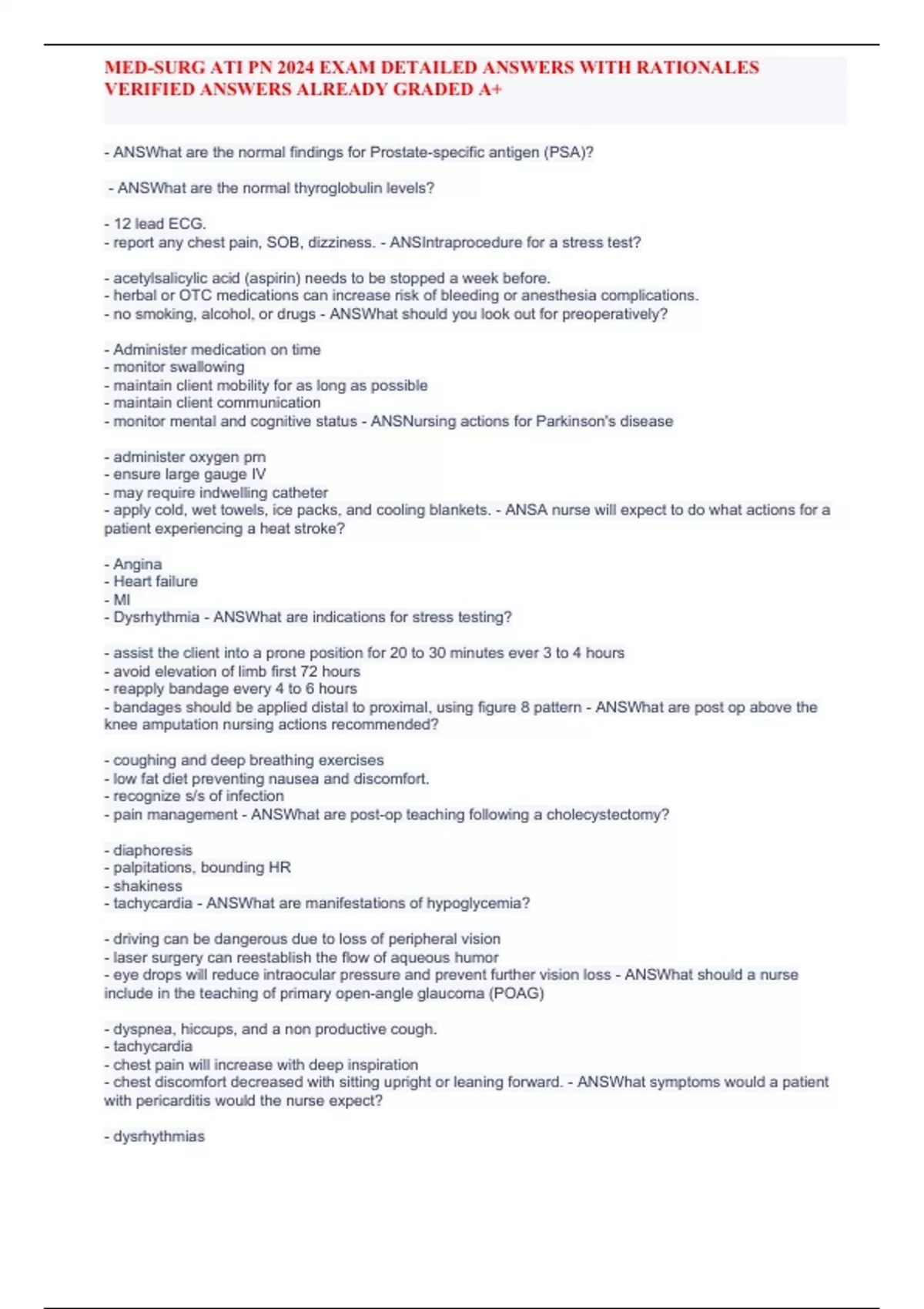 MED-SURG ATI PN 2024 EXAM DETAILED ANSWERS WITH RATIONALES VERIFIED ANSWERS ALREADY GRADED A+