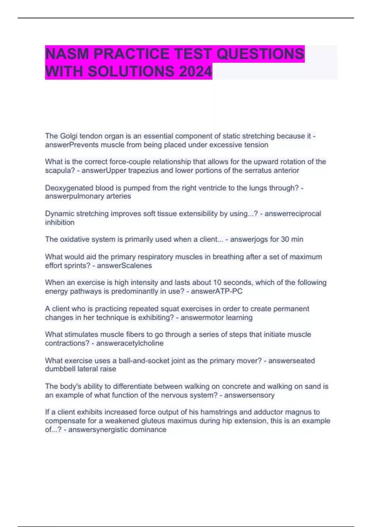 NASM PRACTICE TEST QUESTIONS WITH SOLUTIONS 2024