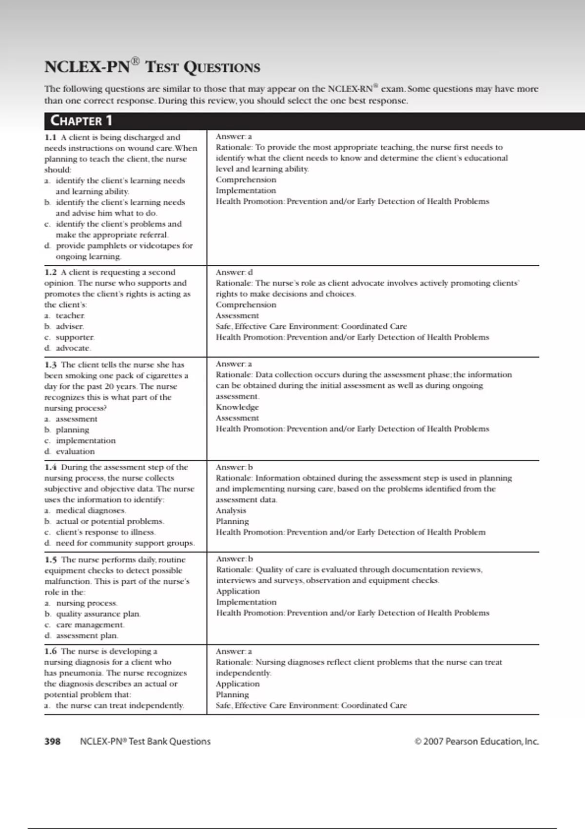 398 nclex pn test bank questions 2007 pearson e