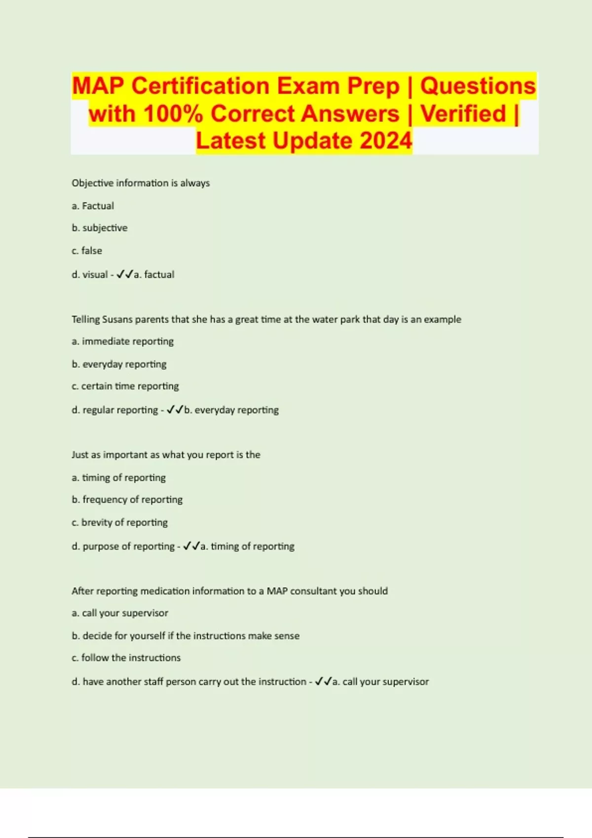 MAP Certification Exam Prep | Questions with 100% Correct Answers | Verified | Latest Update 2024