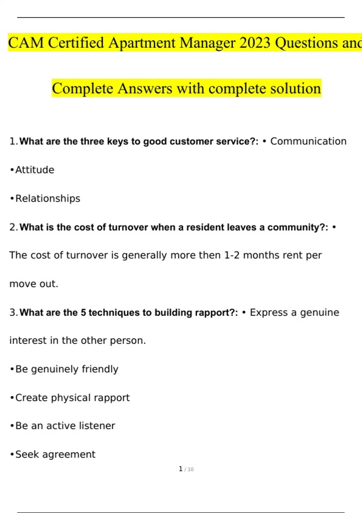 CAM Certified Apartment Manager 2023 Questions and Answers with complete solution
