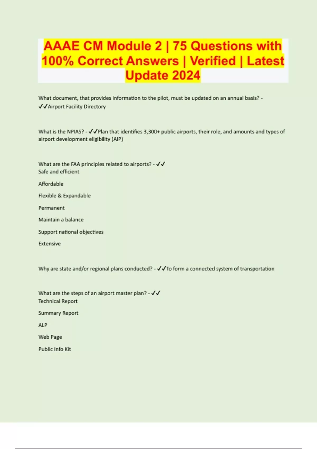 AAAE CM Module 2 | 75 Questions with 100% Correct Answers | Verified | Latest Update 2024