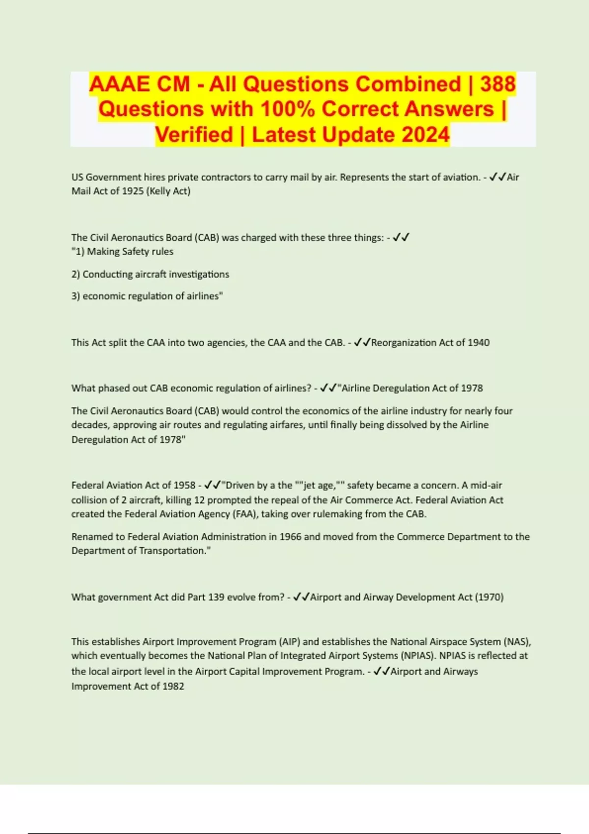 AAAE CM - All Questions Combined | 388 Questions with 100% Correct Answers | Verified | Latest Update 2024