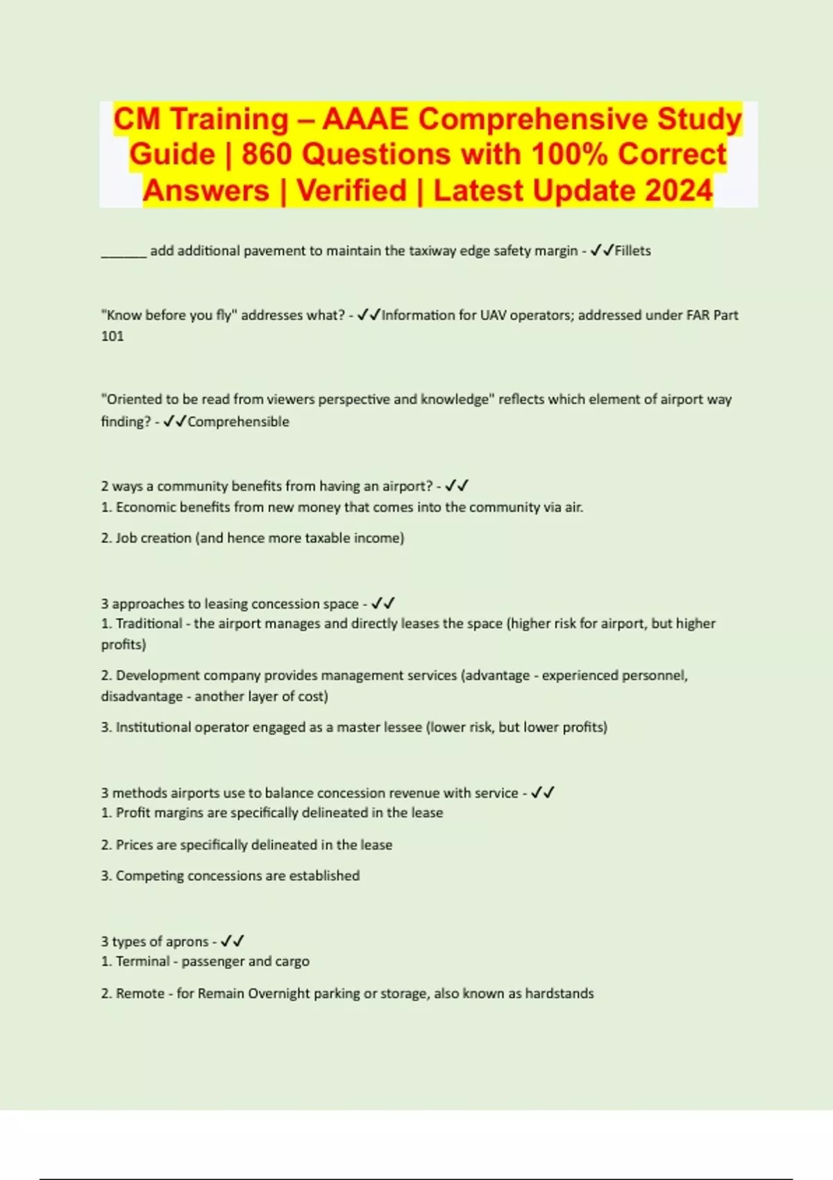CM Training – AAAE Comprehensive Study Guide | 860 Questions with 100% Correct Answers | Verified | Latest Update 2024