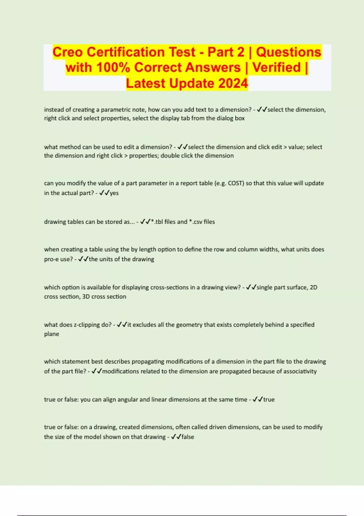 Creo Certification Test - Part 2 | Questions with 100% Correct Answers | Verified | Latest Update 2024
