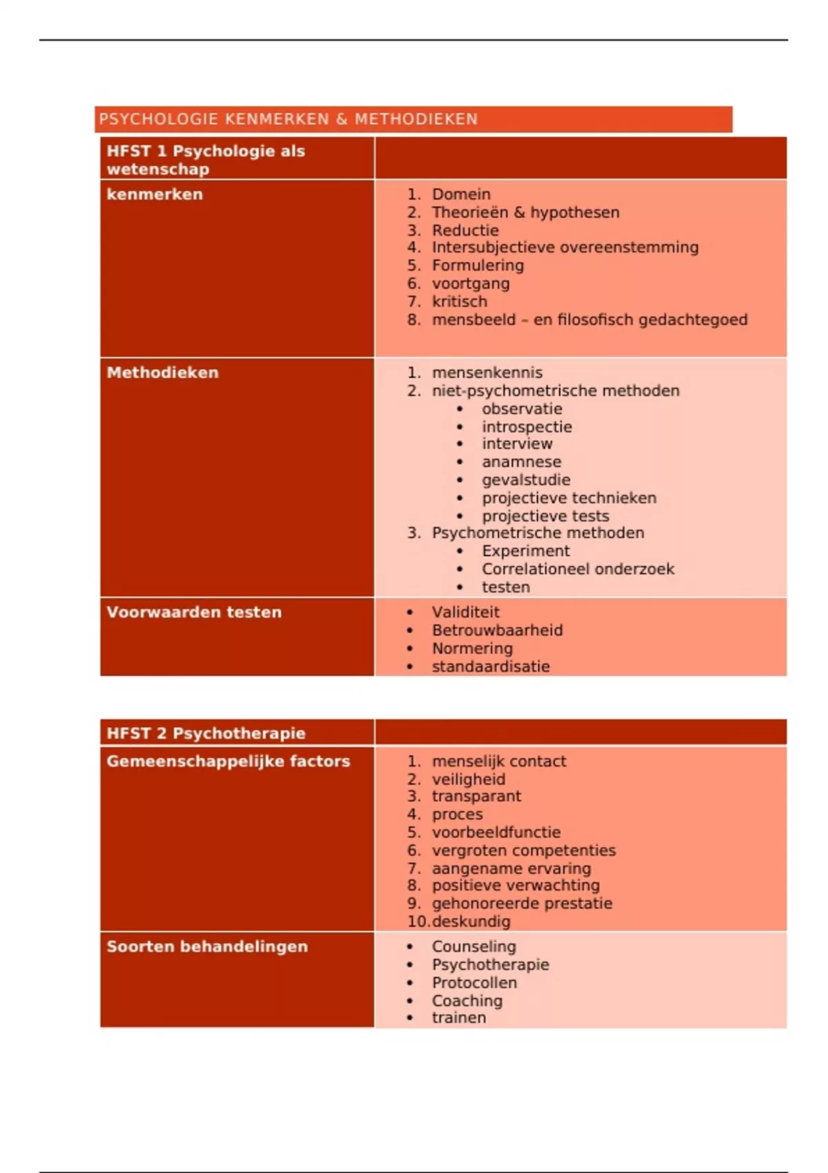 PSYCHOLOGIE KENMERKEN & METHODIEKEN