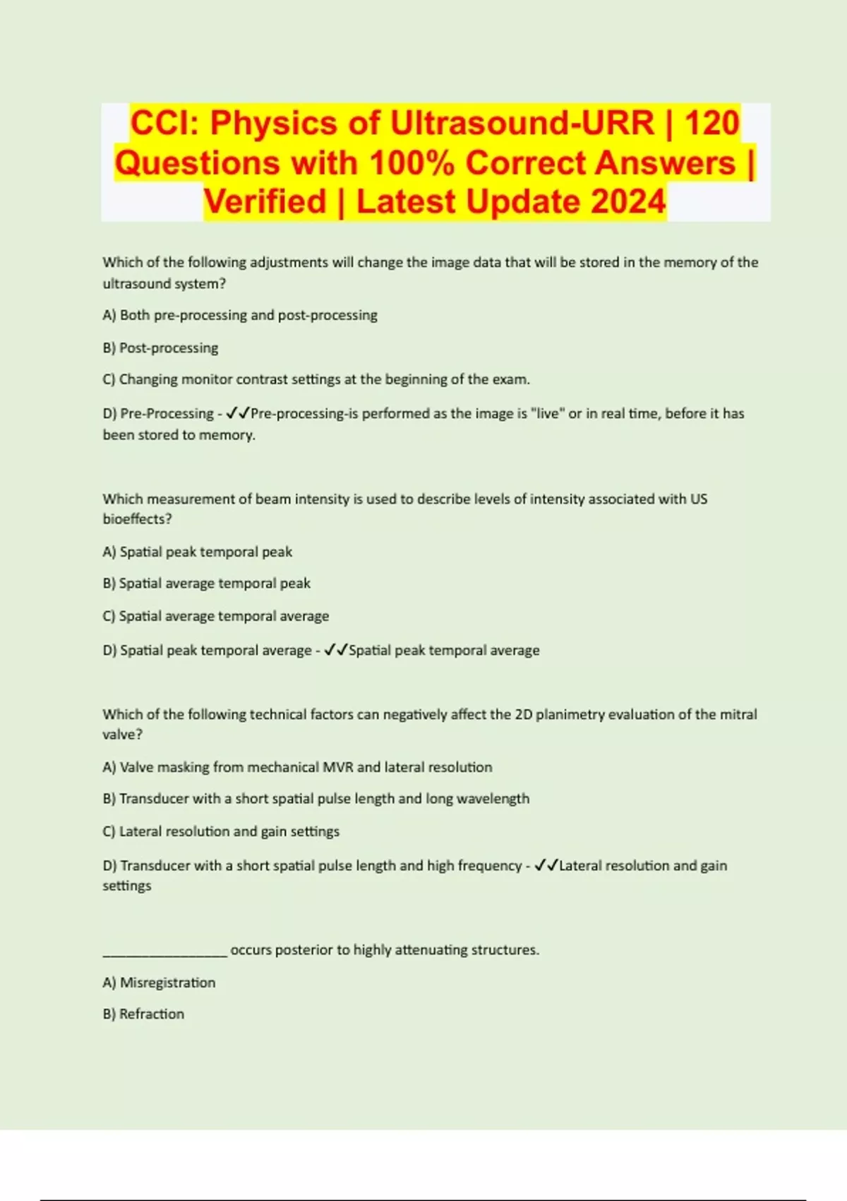 CCI: Physics of Ultrasound-URR | 120 Questions with 100% Correct Answers | Verified | Latest Update 2024