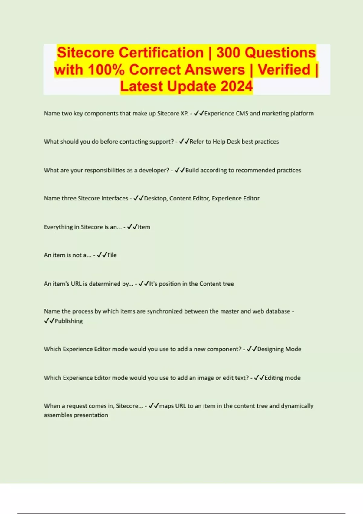 Sitecore Certification | 300 Questions with 100% Correct Answers | Verified | Latest Update 2024
