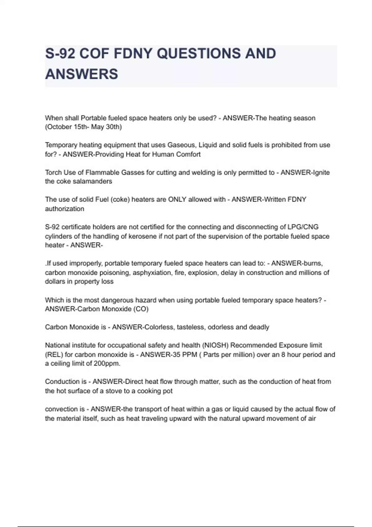FDNY S-92 EXAM QUESTIONS AND ANSWERS