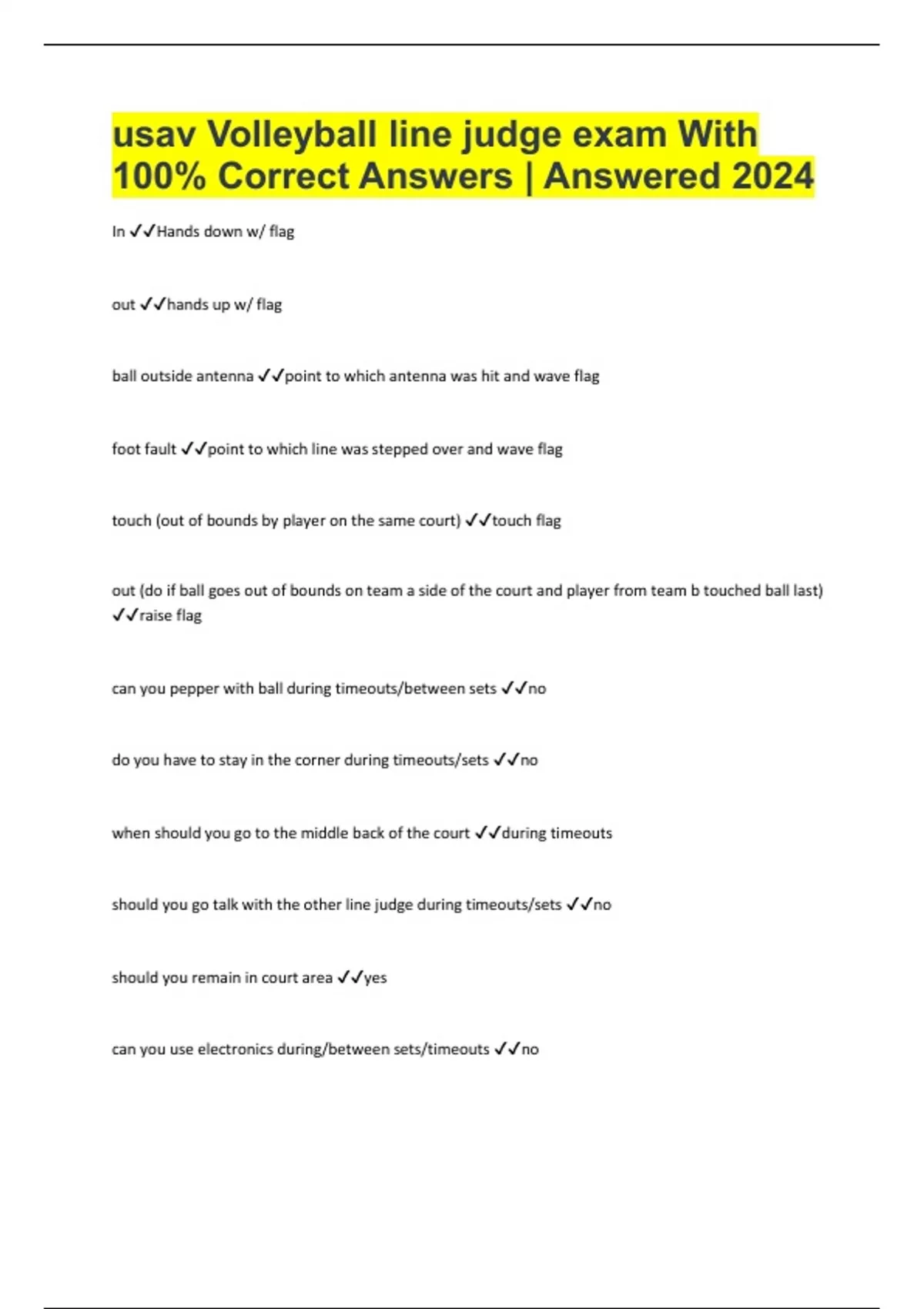 usav Volleyball line judge exam With 100% Correct Answers | Answered 2024
